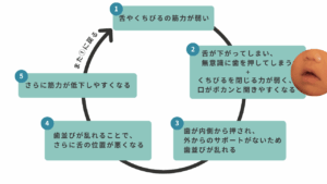 さらに、口腔機能(食べる・飲む・話す・呼吸)にも影響が出やすく、全身の健康にまで関わります。